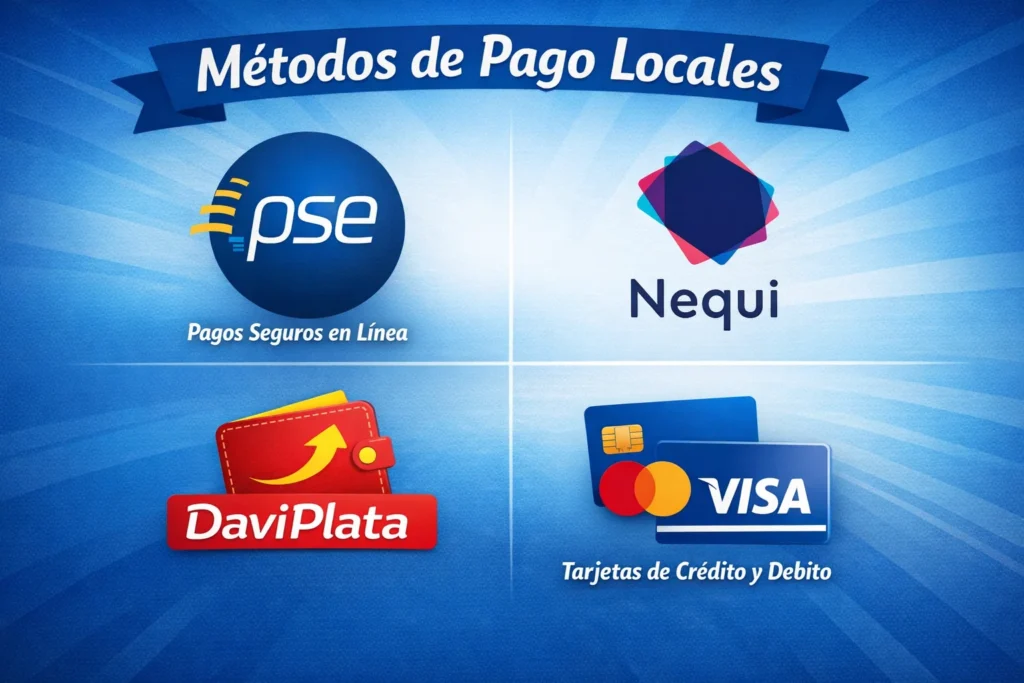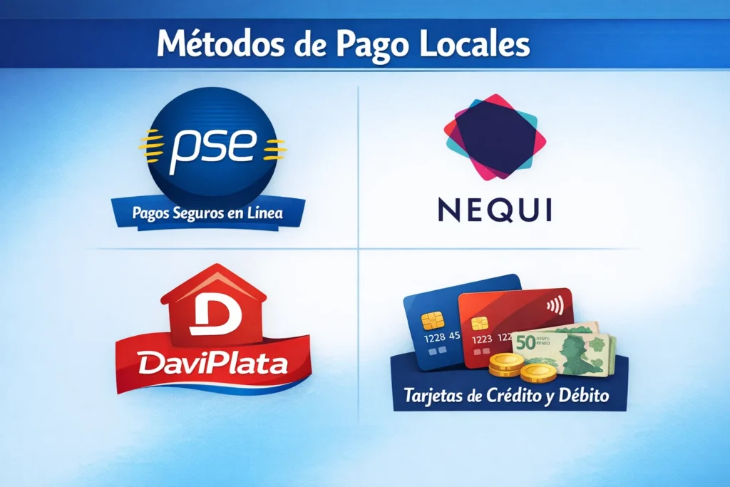 Métodos de pago locales (PSE, Nequi, Daviplata, tarjetas)